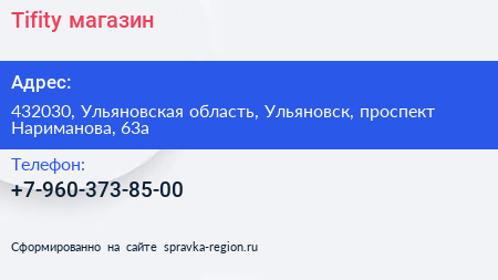 Tifity, магазин по адресу 432030, Ульяновская область, Ульяновск, проспект Нариманова, 63а в дальнейшем Организация, размещена в следующих категориях: