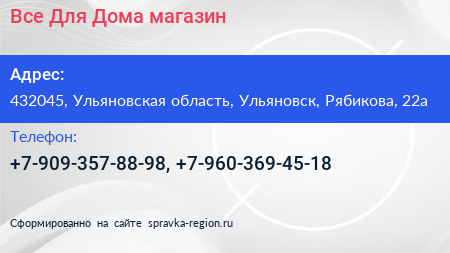Все Для Дома, магазин по адресу 432045, Ульяновская область, Ульяновск, Рябикова, 22а в дальнейшем Организация, размещена в следующих категориях: