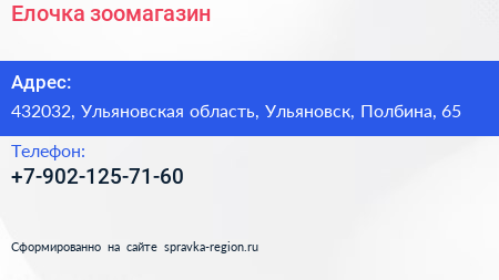 Елочка, зоомагазин по адресу 432032, Ульяновская область, Ульяновск, Полбина, 65 в дальнейшем Организация, размещена в следующих категориях: