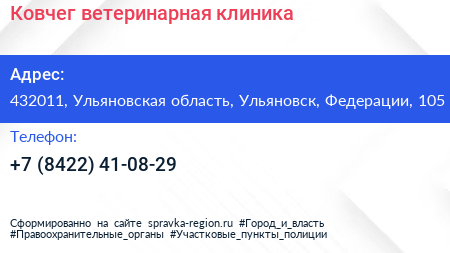 Ковчег, ветеринарная клиника по адресу 432011, Ульяновская область, Ульяновск, Федерации, 105 в дальнейшем Организация, размещена в следующих категориях: