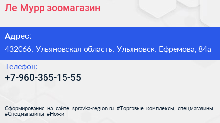 Ле`Мурр, зоомагазин по адресу 432066, Ульяновская область, Ульяновск, Ефремова, 84а в дальнейшем Организация, размещена в следующих категориях:
