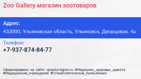 Zoo Gallery, магазин зоотоваров по адресу 432000, Ульяновская область, Ульяновск, Дворцовая, 4а в дальнейшем Организация, размещена в следующих категориях: