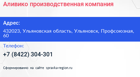 Аливико, производственная компания по адресу 432023, Ульяновская область, Ульяновск, Профсоюзная, 60 в дальнейшем Организация, размещена в следующих категориях: