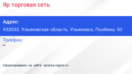 Яр, торговая сеть по адресу 432032, Ульяновская область, Ульяновск, Полбина, 50 в дальнейшем Организация, размещена в следующих категориях: