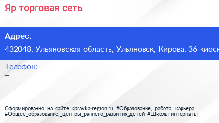 Яр, торговая сеть по адресу 432048, Ульяновская область, Ульяновск, Кирова, 36 киоск в дальнейшем Организация, размещена в следующих категориях: