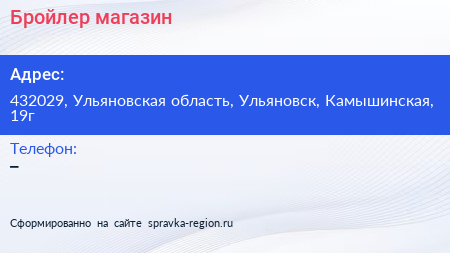 Бройлер, магазин по адресу 432029, Ульяновская область, Ульяновск, Камышинская, 19г в дальнейшем Организация, размещена в следующих категориях: