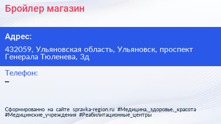 Бройлер, магазин по адресу 432059, Ульяновская область, Ульяновск, проспект Генерала Тюленева, 3д в дальнейшем Организация, размещена в следующих категориях: