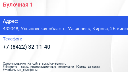 Булочная №1 по адресу 432048, Ульяновская область, Ульяновск, Кирова, 2Б киоск в дальнейшем Организация, размещена в следующих категориях: