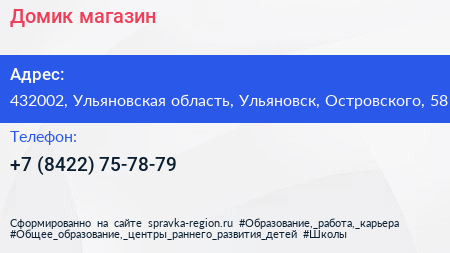 Домик, магазин по адресу 432002, Ульяновская область, Ульяновск, Островского, 58 в дальнейшем Организация, размещена в следующих категориях: