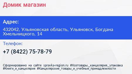 Домик, магазин по адресу 432042, Ульяновская область, Ульяновск, Богдана Хмельницкого, 14 в дальнейшем Организация, размещена в следующих категориях: