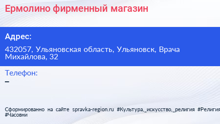 Ермолино, фирменный магазин по адресу 432057, Ульяновская область, Ульяновск, Врача Михайлова, 32 в дальнейшем Организация, размещена в следующих категориях: