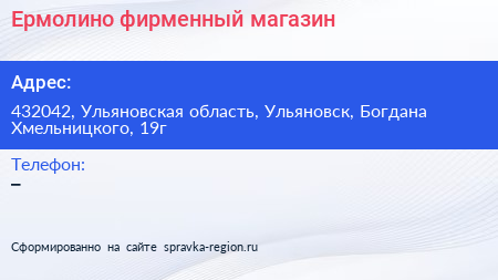 Ермолино, фирменный магазин по адресу 432042, Ульяновская область, Ульяновск, Богдана Хмельницкого, 19г в дальнейшем Организация, размещена в следующих категориях:
