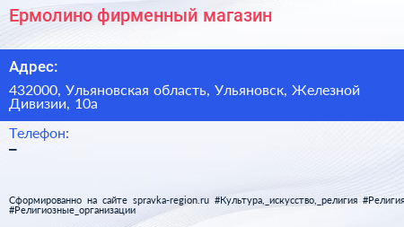 Ермолино, фирменный магазин по адресу 432000, Ульяновская область, Ульяновск, Железной Дивизии, 10а в дальнейшем Организация, размещена в следующих категориях: