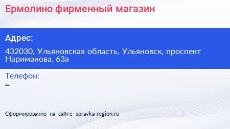Ермолино, фирменный магазин по адресу 432030, Ульяновская область, Ульяновск, проспект Нариманова, 63а в дальнейшем Организация, размещена в следующих категориях: