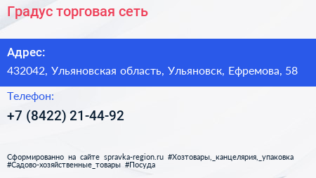 Градус, торговая сеть по адресу 432042, Ульяновская область, Ульяновск, Ефремова, 58 в дальнейшем Организация, размещена в следующих категориях: