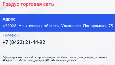 Градус, торговая сеть по адресу 432026, Ульяновская область, Ульяновск, Панорамная, 75 в дальнейшем Организация, размещена в следующих категориях: