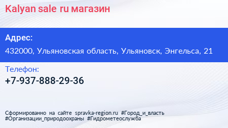 Kalyan-sale.ru, магазин по адресу 432000, Ульяновская область, Ульяновск, Энгельса, 21 в дальнейшем Организация, размещена в следующих категориях: