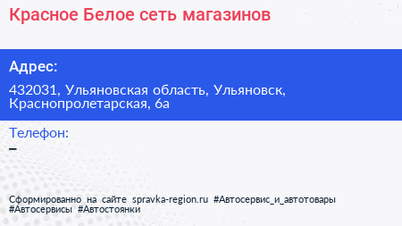 Красное & Белое, сеть магазинов по адресу 432031, Ульяновская область, Ульяновск, Краснопролетарская, 6а в дальнейшем Организация, размещена в следующих категориях: