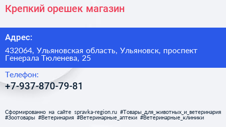 Крепкий орешек, магазин по адресу 432064, Ульяновская область, Ульяновск, проспект Генерала Тюленева, 25 в дальнейшем Организация, размещена в следующих категориях: