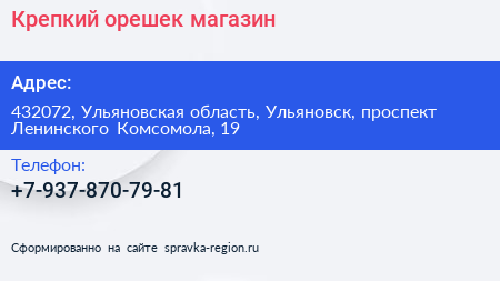 Крепкий орешек, магазин по адресу 432072, Ульяновская область, Ульяновск, проспект Ленинского Комсомола, 19 в дальнейшем Организация, размещена в следующих категориях: