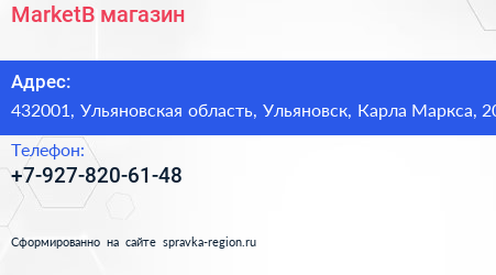MarketB, магазин по адресу 432001, Ульяновская область, Ульяновск, Карла Маркса, 20 в дальнейшем Организация, размещена в следующих категориях: