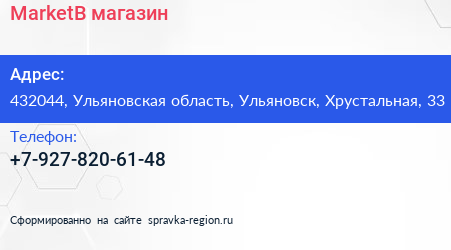 MarketB, магазин по адресу 432044, Ульяновская область, Ульяновск, Хрустальная, 33 в дальнейшем Организация, размещена в следующих категориях: