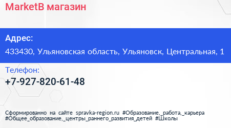 MarketB, магазин по адресу 433430, Ульяновская область, Ульяновск, Центральная, 1 в дальнейшем Организация, размещена в следующих категориях:
