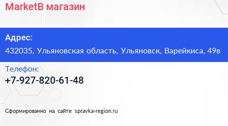 MarketB, магазин по адресу 432035, Ульяновская область, Ульяновск, Варейкиса, 49в в дальнейшем Организация, размещена в следующих категориях: