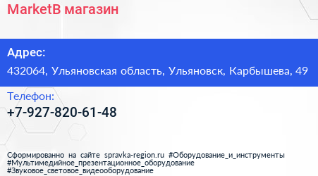 MarketB, магазин по адресу 432064, Ульяновская область, Ульяновск, Карбышева, 49 в дальнейшем Организация, размещена в следующих категориях: