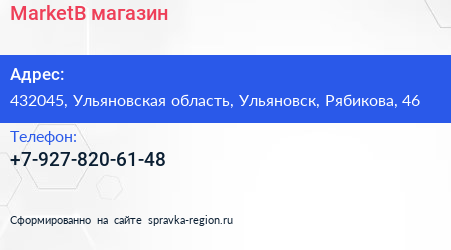 MarketB, магазин по адресу 432045, Ульяновская область, Ульяновск, Рябикова, 46 в дальнейшем Организация, размещена в следующих категориях: