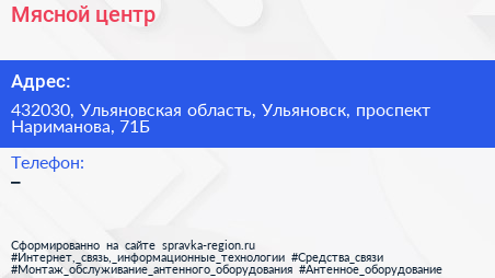 Мясной центр по адресу 432030, Ульяновская область, Ульяновск, проспект Нариманова, 71Б в дальнейшем Организация, размещена в следующих категориях: