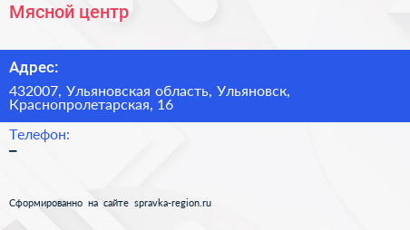 Мясной центр по адресу 432007, Ульяновская область, Ульяновск, Краснопролетарская, 16 в дальнейшем Организация, размещена в следующих категориях:
