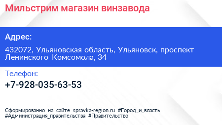 Мильстрим, магазин винзавода по адресу 432072, Ульяновская область, Ульяновск, проспект Ленинского Комсомола, 34 в дальнейшем Организация, размещена в следующих категориях: