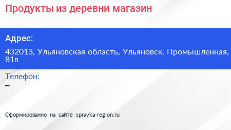 Продукты из деревни, магазин по адресу 432013, Ульяновская область, Ульяновск, Промышленная, 81в в дальнейшем Организация, размещена в следующих категориях: