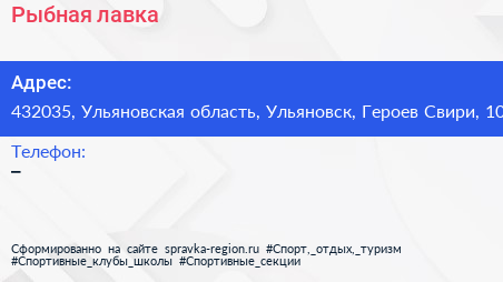 Рыбная лавка по адресу 432035, Ульяновская область, Ульяновск, Героев Свири, 10 в дальнейшем Организация, размещена в следующих категориях: