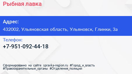 Рыбная лавка по адресу 432002, Ульяновская область, Ульяновск, Глинки, 3а в дальнейшем Организация, размещена в следующих категориях:
