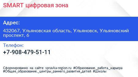 SMART, цифровая зона по адресу 432067, Ульяновская область, Ульяновск, Ульяновский проспект, 6 в дальнейшем Организация, размещена в следующих категориях: