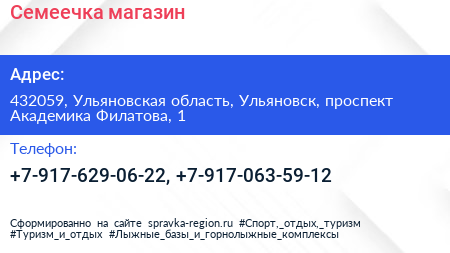 Семеечка, магазин по адресу 432059, Ульяновская область, Ульяновск, проспект Академика Филатова, 1 в дальнейшем Организация, размещена в следующих категориях: