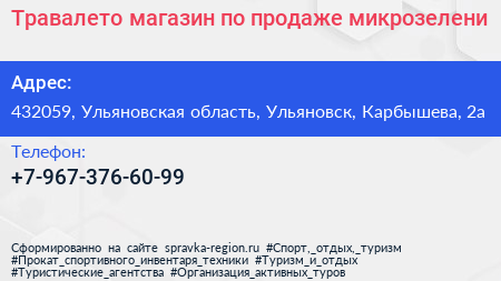 Травалето, магазин по продаже микрозелени по адресу 432059, Ульяновская область, Ульяновск, Карбышева, 2а в дальнейшем Организация, размещена в следующих категориях: