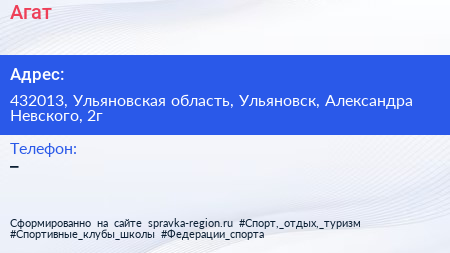 Агат по адресу 432013, Ульяновская область, Ульяновск, Александра Невского, 2г в дальнейшем Организация, размещена в следующих категориях: