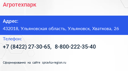 Агротехпарк по адресу 432018, Ульяновская область, Ульяновск, Хваткова, 26 в дальнейшем Организация, размещена в следующих категориях: