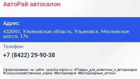 АвтоРай, автосалон по адресу 432045, Ульяновская область, Ульяновск, Московское шоссе, 17к в дальнейшем Организация, размещена в следующих категориях: