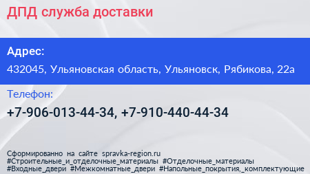 ДПД, служба доставки по адресу 432045, Ульяновская область, Ульяновск, Рябикова, 22а в дальнейшем Организация, размещена в следующих категориях: