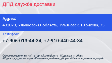 ДПД, служба доставки по адресу 432073, Ульяновская область, Ульяновск, Рябикова, 75 в дальнейшем Организация, размещена в следующих категориях: