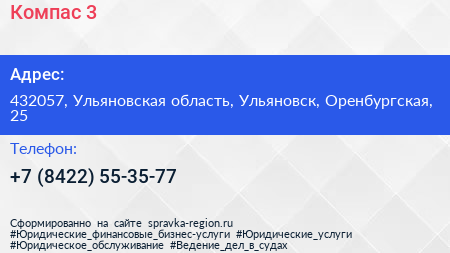 Компас-3 по адресу 432057, Ульяновская область, Ульяновск, Оренбургская, 25 в дальнейшем Организация, размещена в следующих категориях: