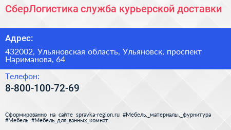 СберЛогистика, служба курьерской доставки по адресу 432002, Ульяновская область, Ульяновск, проспект Нариманова, 64 в дальнейшем Организация, размещена в следующих категориях: