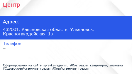 Центр по адресу 432001, Ульяновская область, Ульяновск, Красногвардейская, 1в в дальнейшем Организация, размещена в следующих категориях: