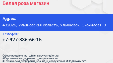 Белая роза, магазин по адресу 432026, Ульяновская область, Ульяновск, Скочилова, 3 в дальнейшем Организация, размещена в следующих категориях: