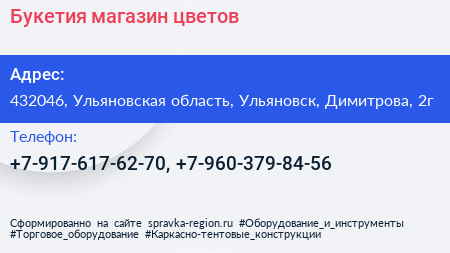 Букетия, магазин цветов по адресу 432046, Ульяновская область, Ульяновск, Димитрова, 2г в дальнейшем Организация, размещена в следующих категориях: