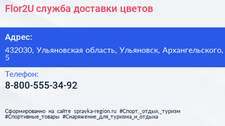 Flor2U, служба доставки цветов по адресу 432030, Ульяновская область, Ульяновск, Архангельского, 5 в дальнейшем Организация, размещена в следующих категориях:
